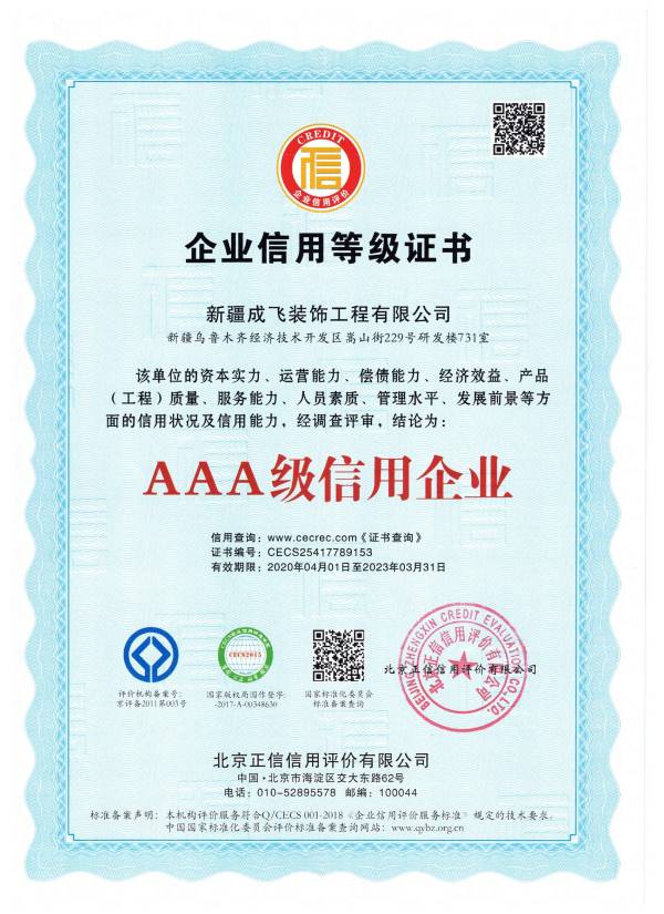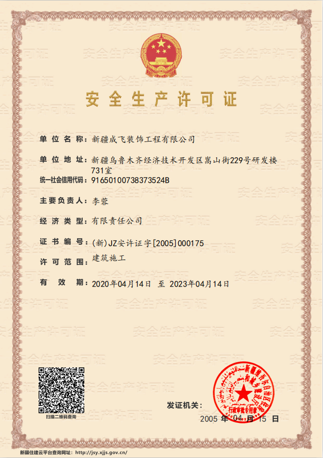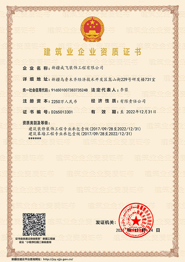 新疆成飛建設工程有限公司是一家以專注于裝飾工程領域,堅持穩(wěn)健經營、持續(xù)創(chuàng)新、開放合作的原則,在星級賓館、高檔寫字樓、大型商場、高級餐館、娛樂設施、車站、銀行等大型室內外建筑工程(包括各類玻璃幕墻、石材幕墻、鋁板幕墻、鋼結構室內裝飾等工程)裝飾裝修...查看更多